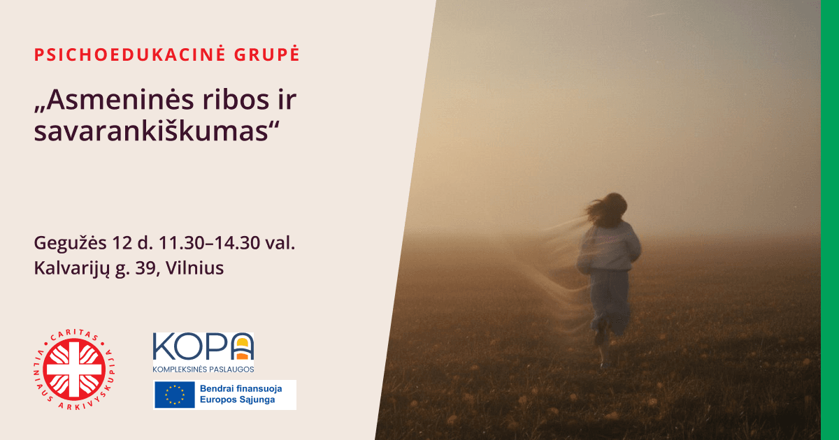 Grupės užsiėmimai nemokami, įgyvendinami pagal projektą „Kompleksinės paslaugos (KOPA)“ ir finansuojami 2021–2027 metų Europos Sąjungos fondų investicijų programos lėšomis.