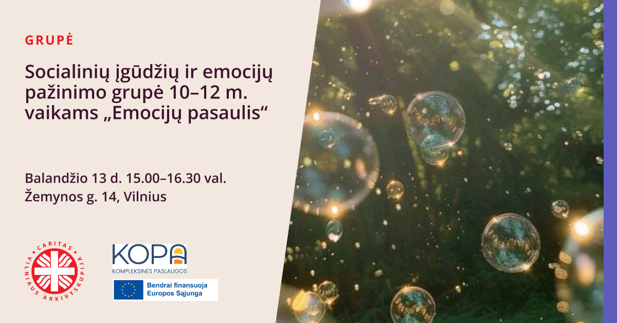 Grupės užsiėmimai nemokami, įgyvendinami pagal projektą „Kompleksinės paslaugos (KOPA)“ ir finansuojami 2021–2027 metų Europos Sąjungos fondų investicijų programos lėšomis.